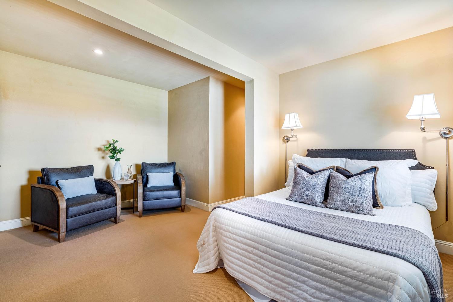 Unlock exceptional value with new pricing and a complimentary Silverado Club Membership transfer for purchases made before year-end. This refined 4-bed, 3-bath contemporary Mediterranean home, set at the end of a serene cul-de-sac in the coveted Silverado community, offers sweeping valley vistas and timeless architectural character. Vaulted ceilings, exposed wood beams, plaster walls, two wood-burning fireplaces, custom window seats, and abundant natural light create an atmosphere of understated elegance. The expansive kitchen and open family room flow seamlessly to a stunning deck overlooking Napa Valley, where views extend to the Mayacamasan idyllic setting for savoring morning coffee as hot-air balloons drift past or enjoying wine at sunset. Three generous bedrooms grace the main level, while a private lower-level suite provides an ideal guest enclave or dedicated home office. Designed for effortless indoor-outdoor living, the home is framed by inviting terraces and beautifully tended gardens. More than a residence, it is an entre to the Silverado lifestyle: championship golf (home to the ProCore Championship), tennis and pickleball, swimming pools, a full-service spa, fine dining, and proximity to world-class wineries and downtown Napa's vibrant shopping + culinary scene!